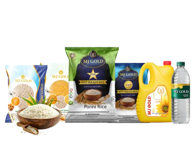 Bulk supply of rice, cooking oil, pulses, and packaged drinking water for distributors, retailers, and businesses.